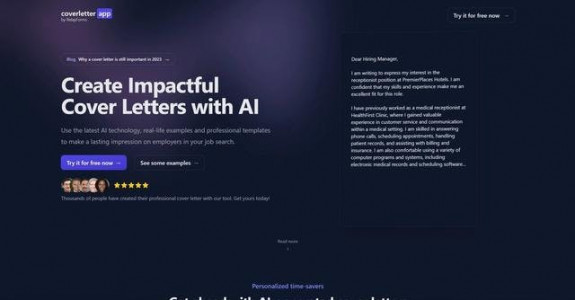 CoverLetterSimple.ai is an AI tool that generates personalized cover letters for job applications, saving...