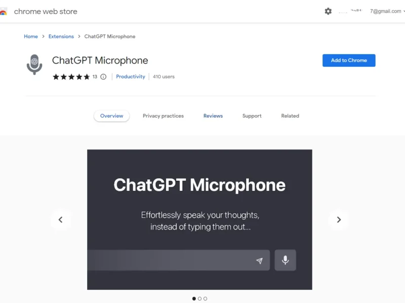 Chrome.google.com/webstore/detail/chatgpt-microphone/kpnejlajlhnpfphbhgfipmlogplmidin is a Chrome extension that allows users to interact with the ChatGPT AI model...